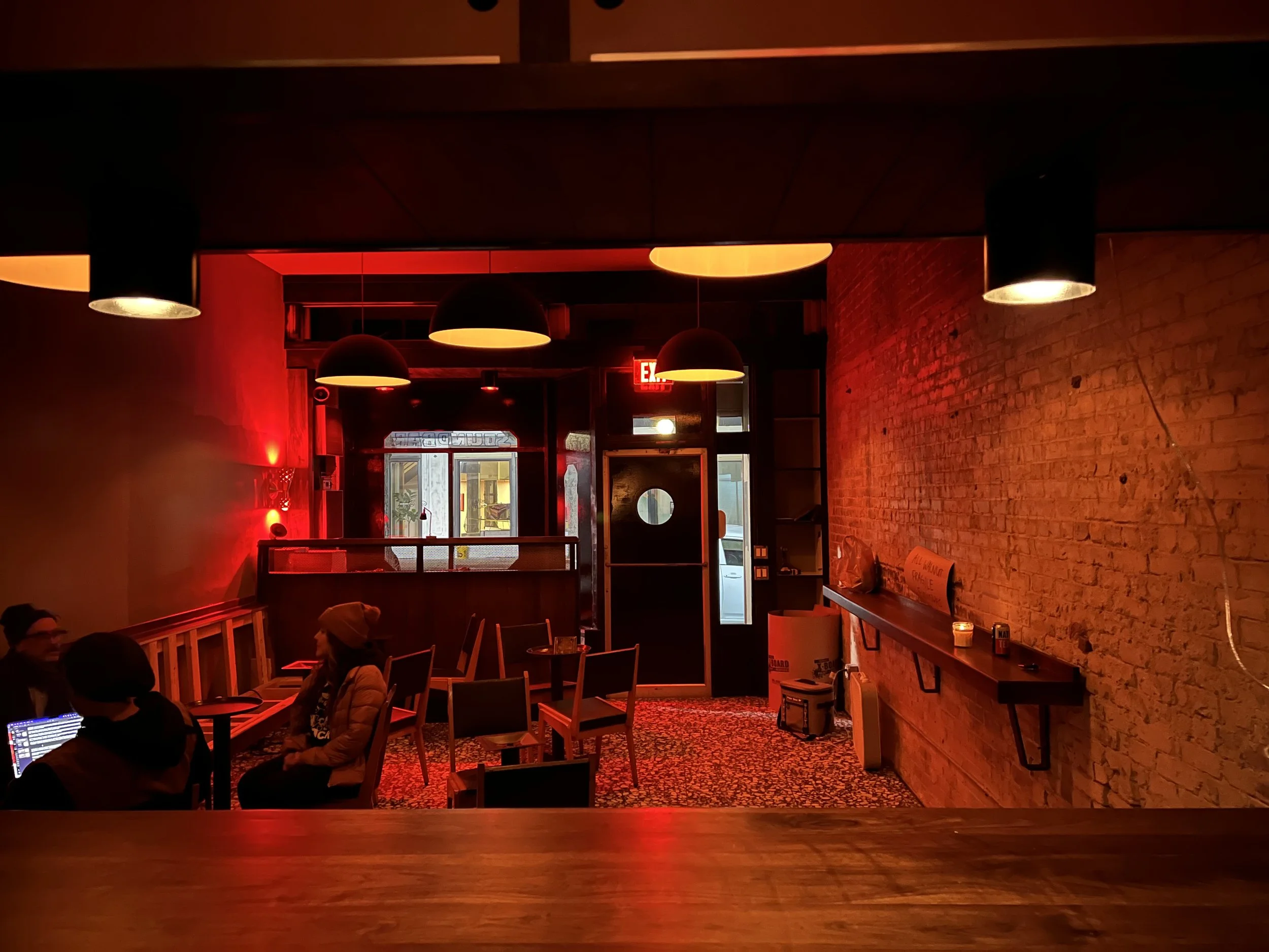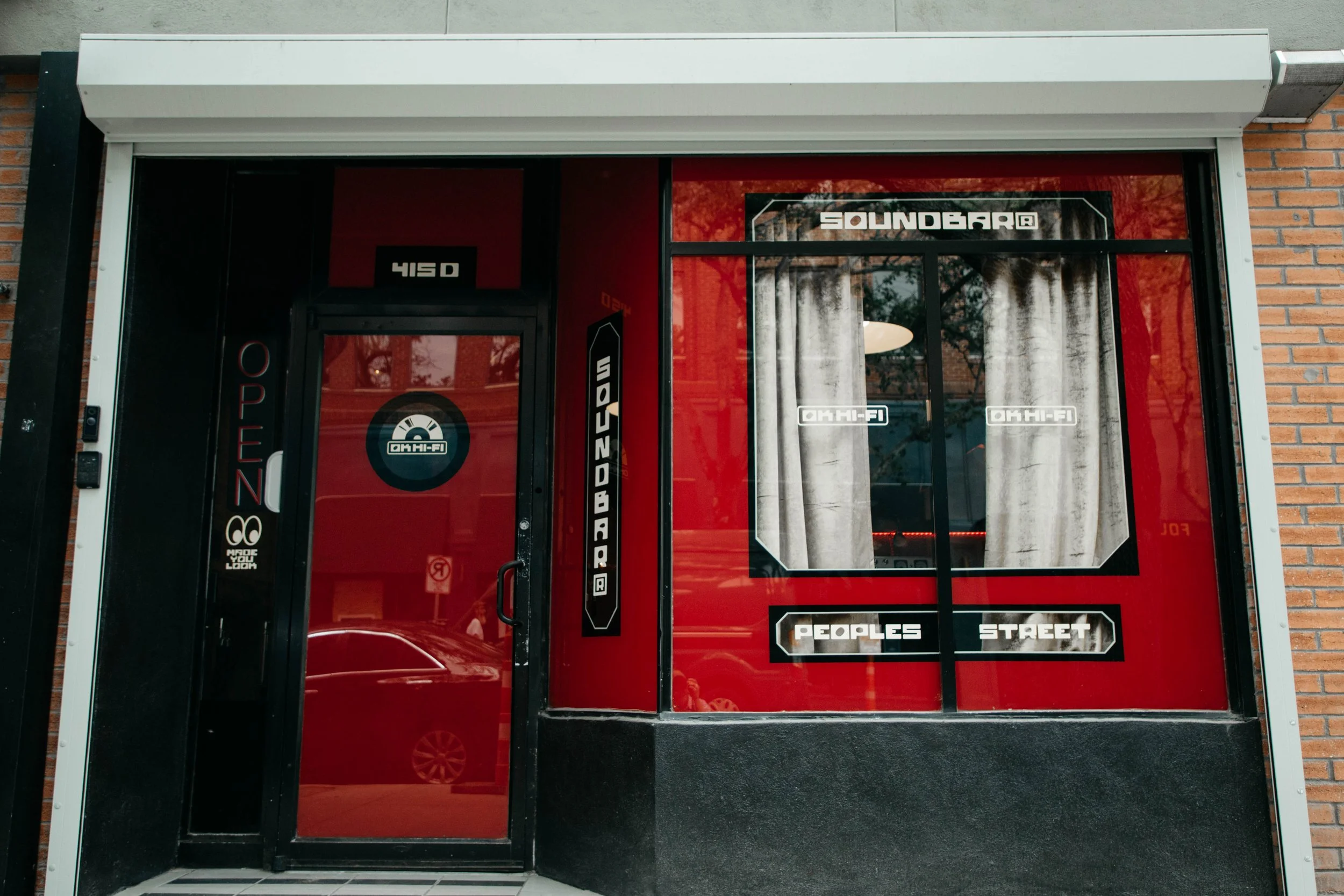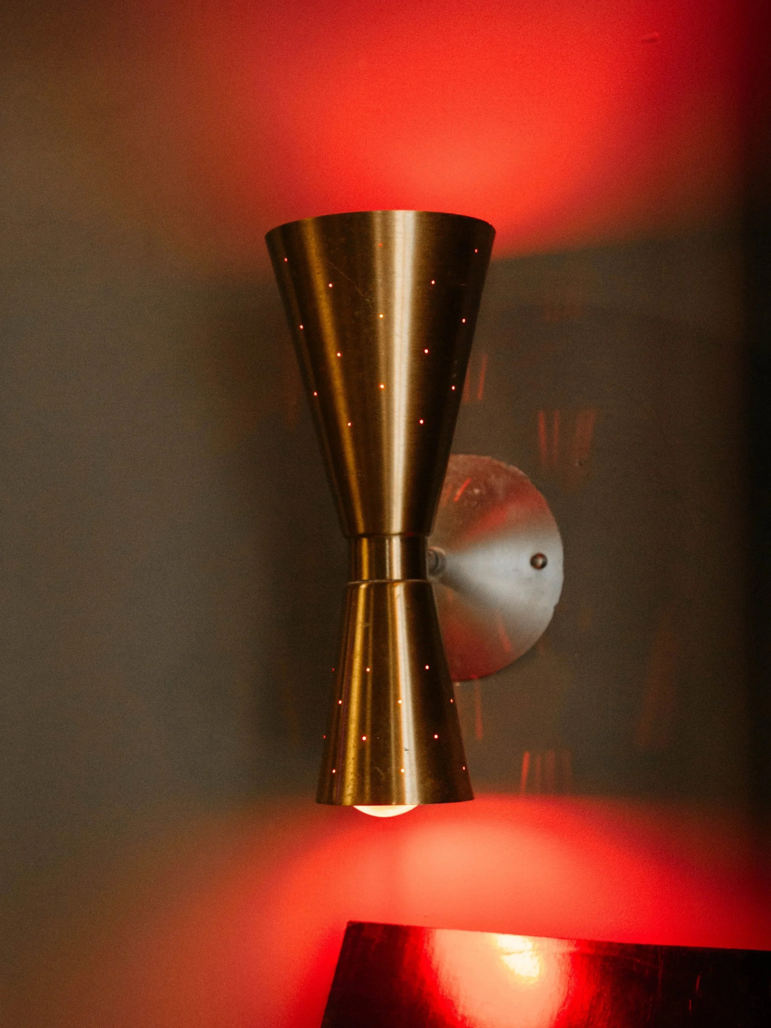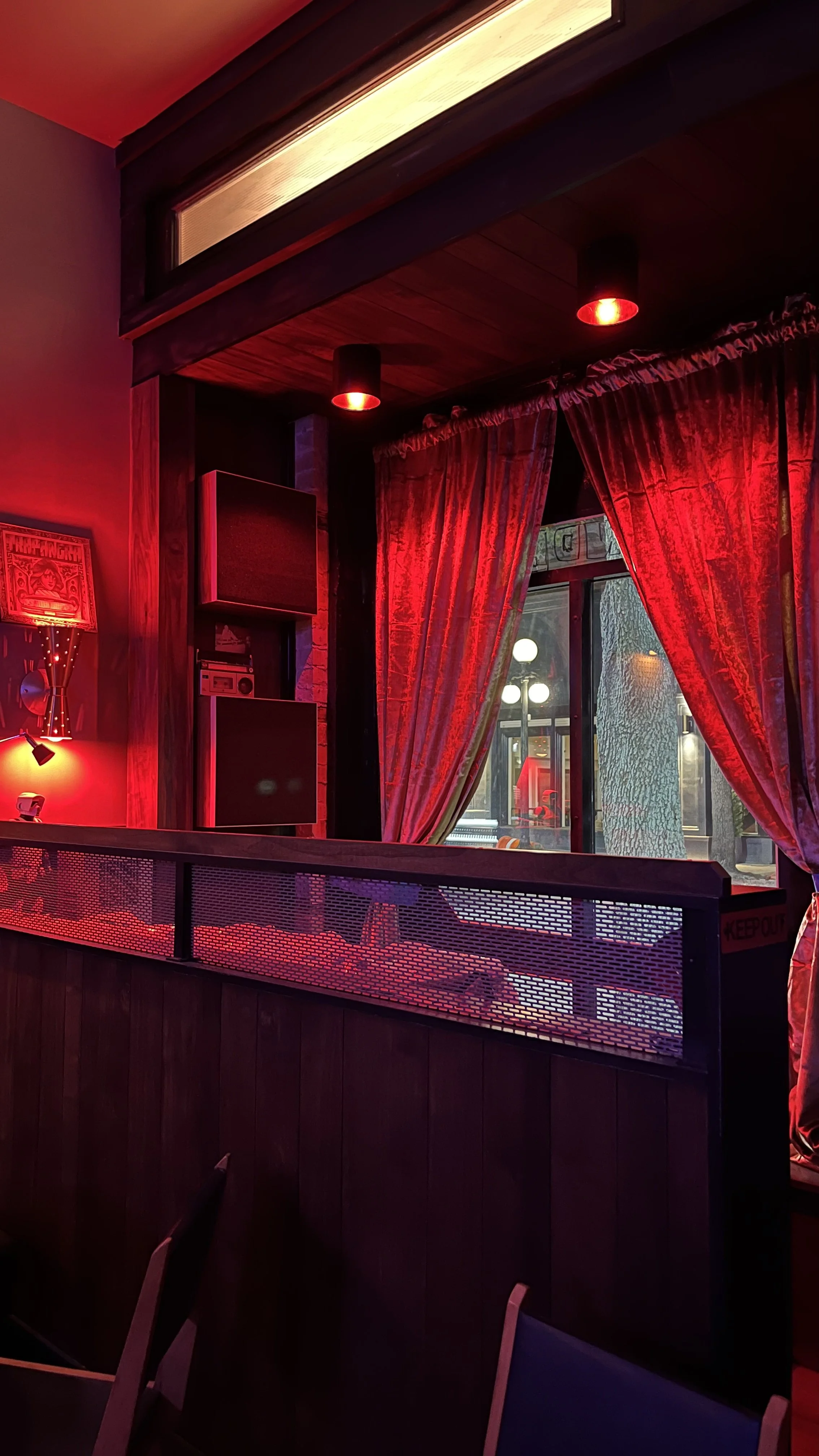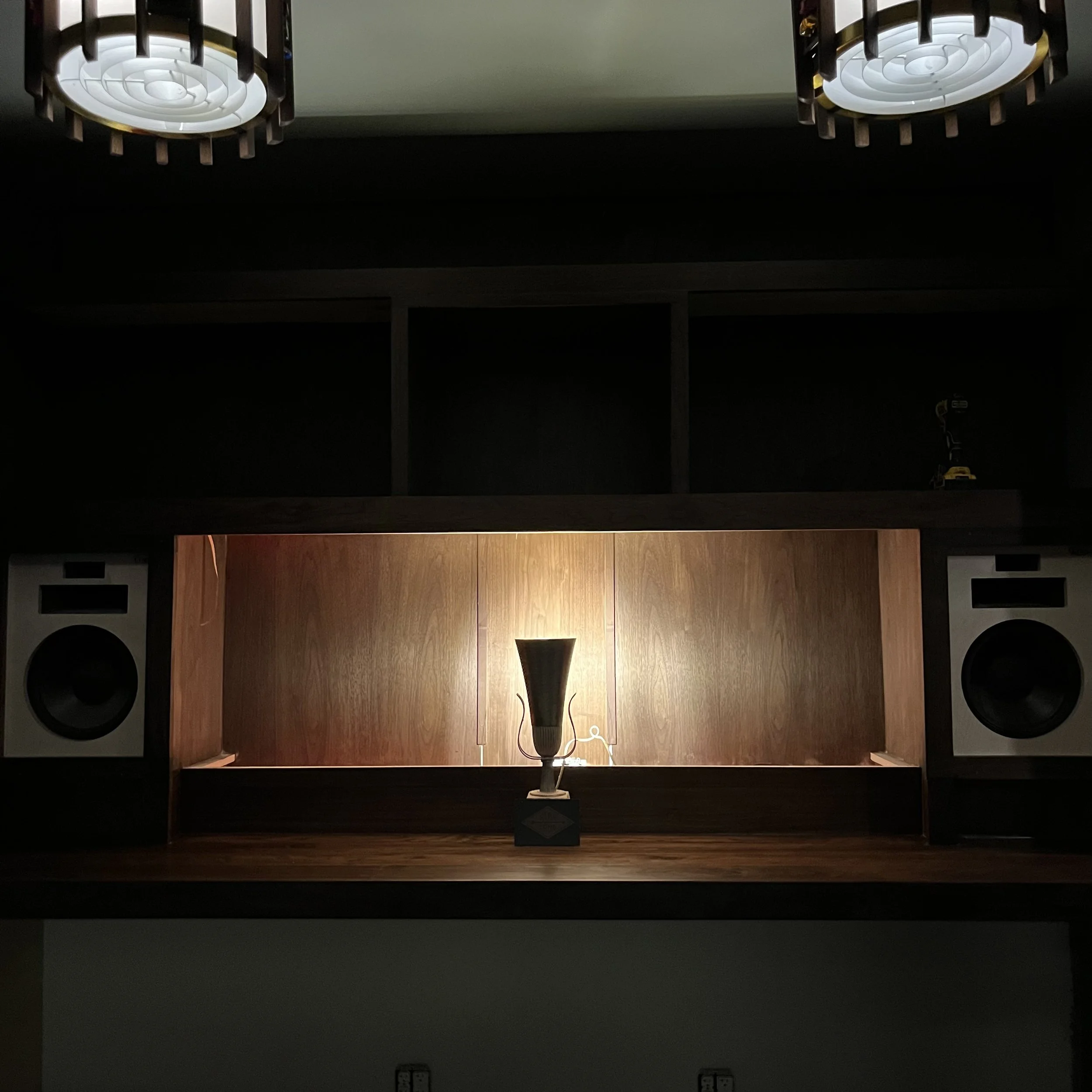At OKHIFI the focus is always meant to be the music and signature drinks, however all surfaces and details need to match the quality of sound. The 3-way speakers flying overhead are paired with oversized vintage dome lights. At every opportunity vintage fixtures were sourced for lighting and furniture. All the bar units visible to the customers are walnut.